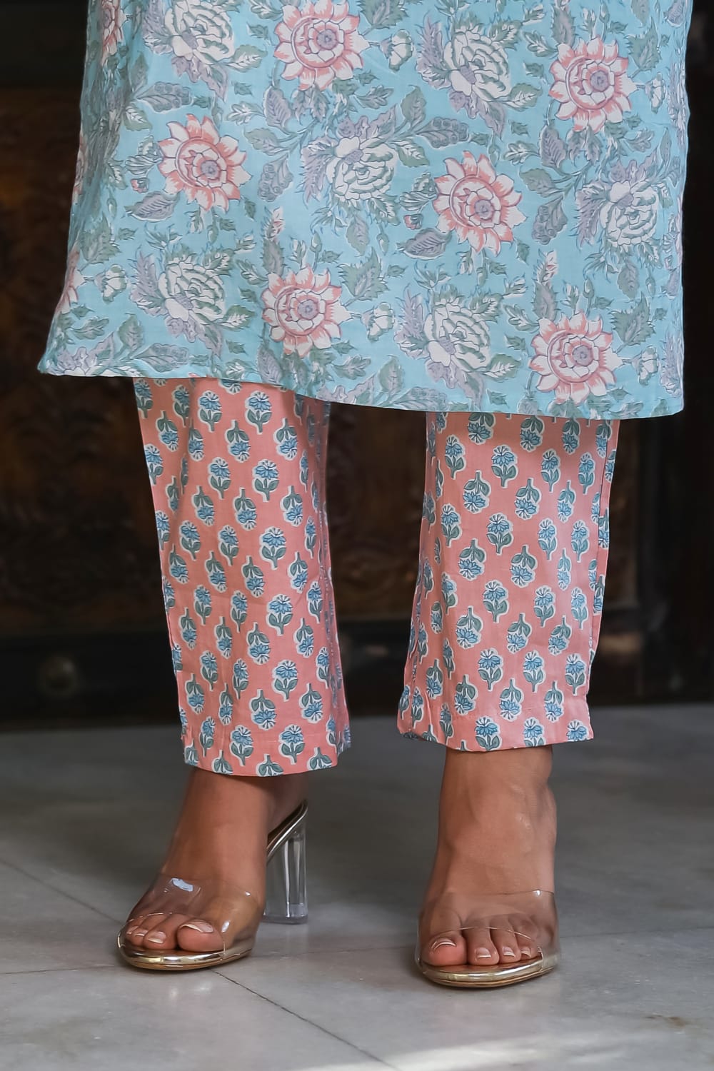 Floral Breathable Soft Sky Relaxing Fit Cotton Suit (3 piece)